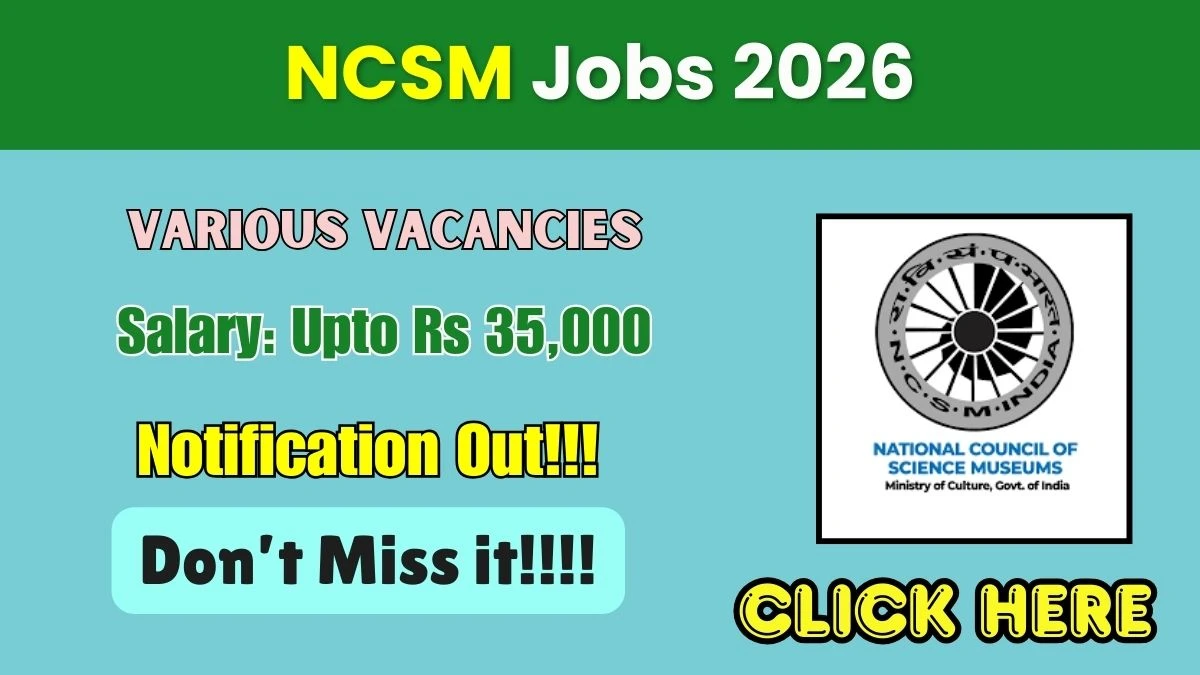 NCSM Recruitment 2026 National Council of Science Museums (NCSM) Recruitment 2026 for 02 posts of Assistant Public Relations Executive, Videographer…
