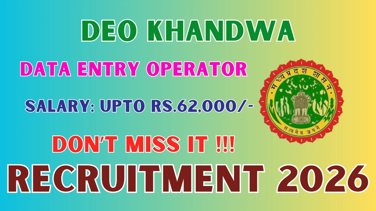 District Election Officer Khandwa (DEO Khandwa) has released an official notification for the recruitment of 01 Data Entry Operator Posts….