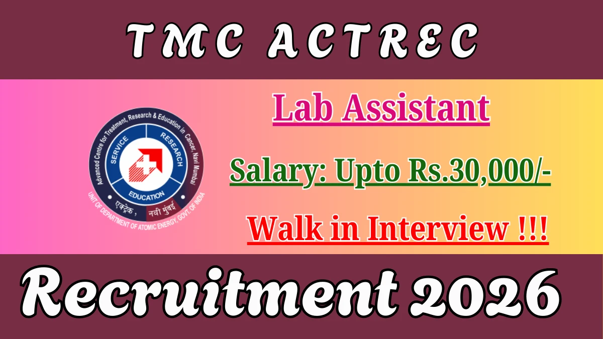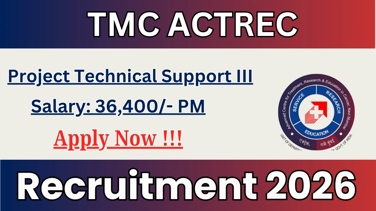 Updated February 2, 2026 4:34 PM02 February 2026 04:34 PM by K Sangeetha TMC ACTREC Recruitment 2026 Advanced Centre…